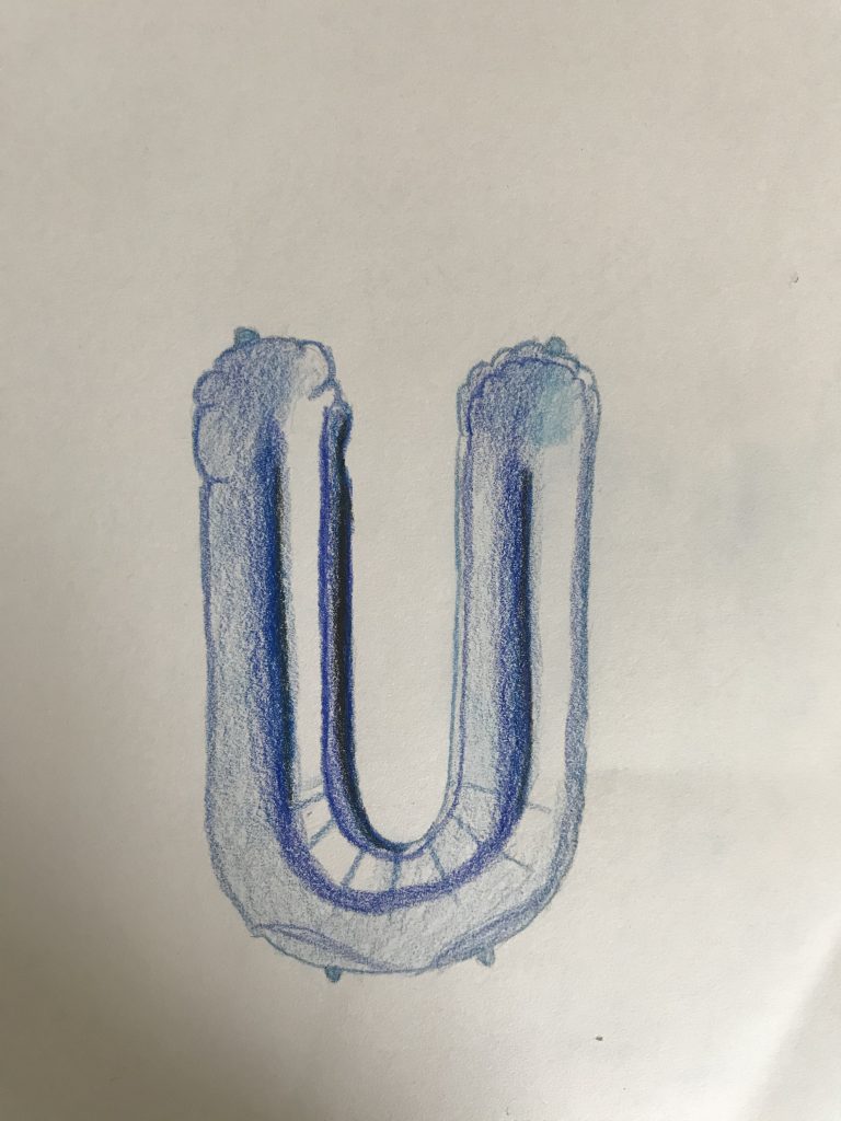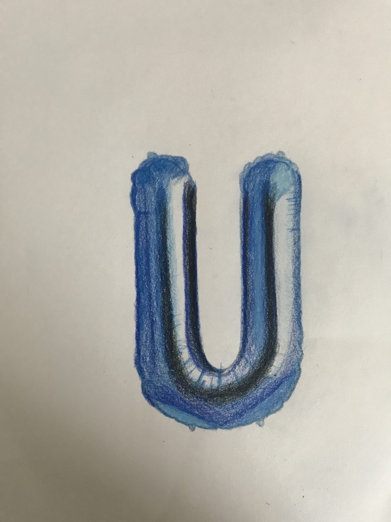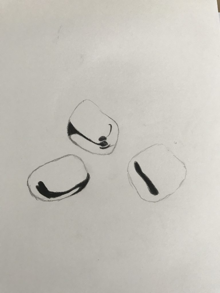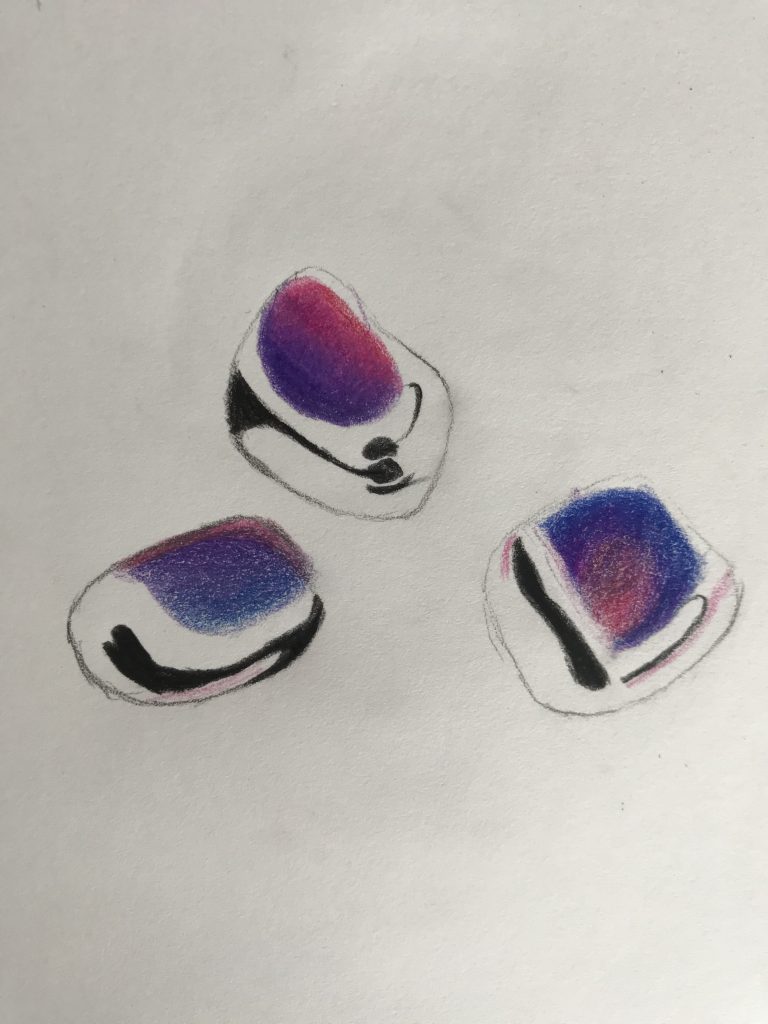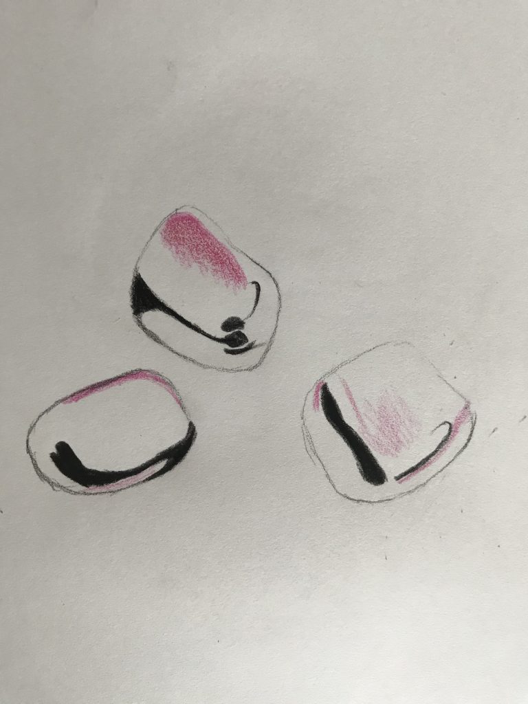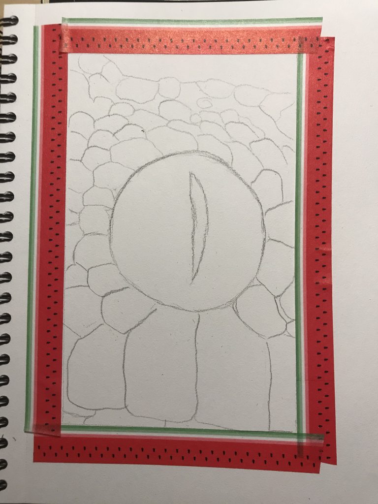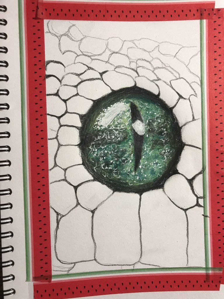 Vom Auge aus bin ich dann immer mehr in Gesicht gekommen. Das Augenlid habe ich dunkel an den Rändern und hell in der Mite gezeichnet, so werden Lichtverhältnisse dargestellt.