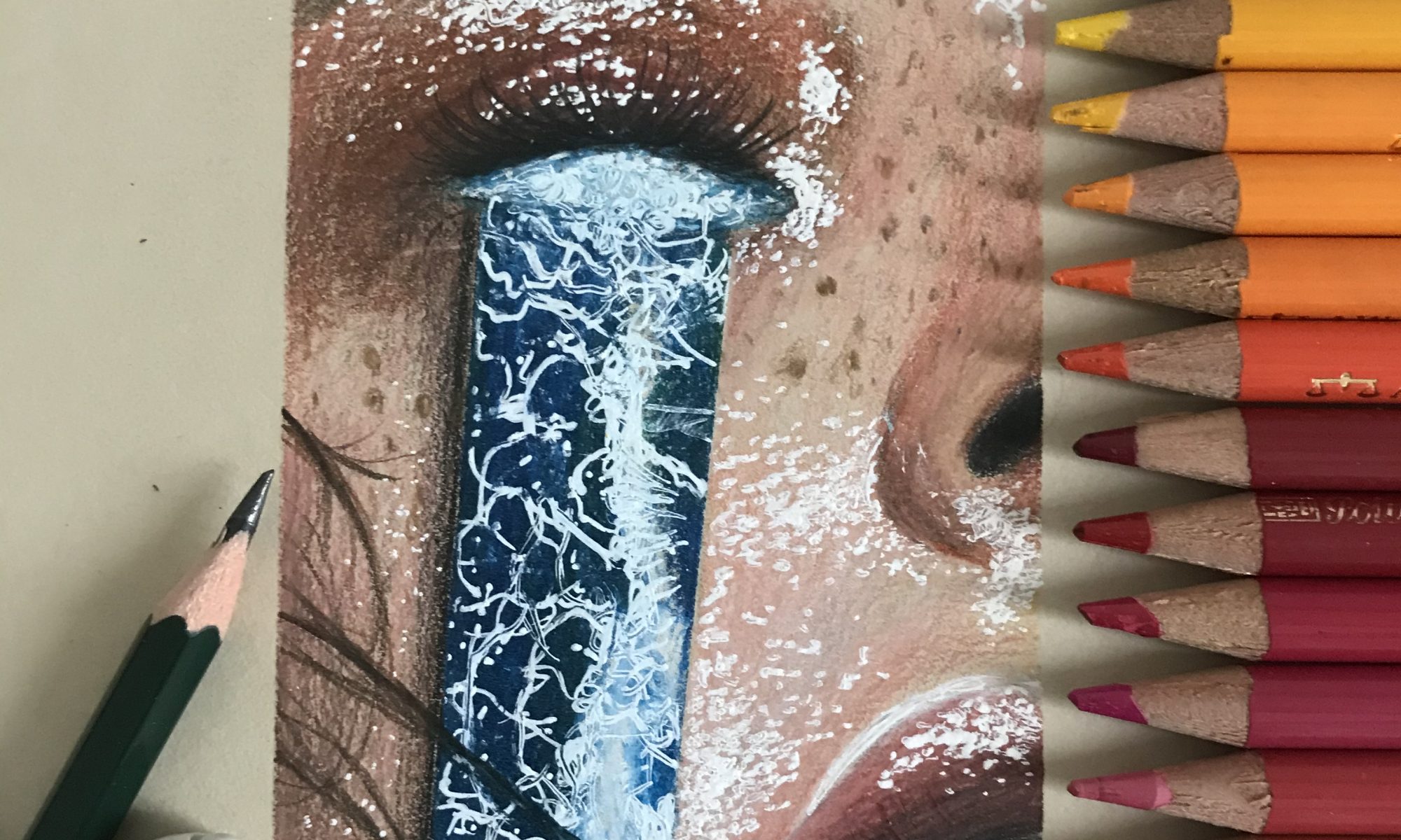 Jetzt bist du an dem Part angekommen an dem du immer mehr verblendest, entweder mit einem weißen Buntstift oder mit hellen Brauntönen.