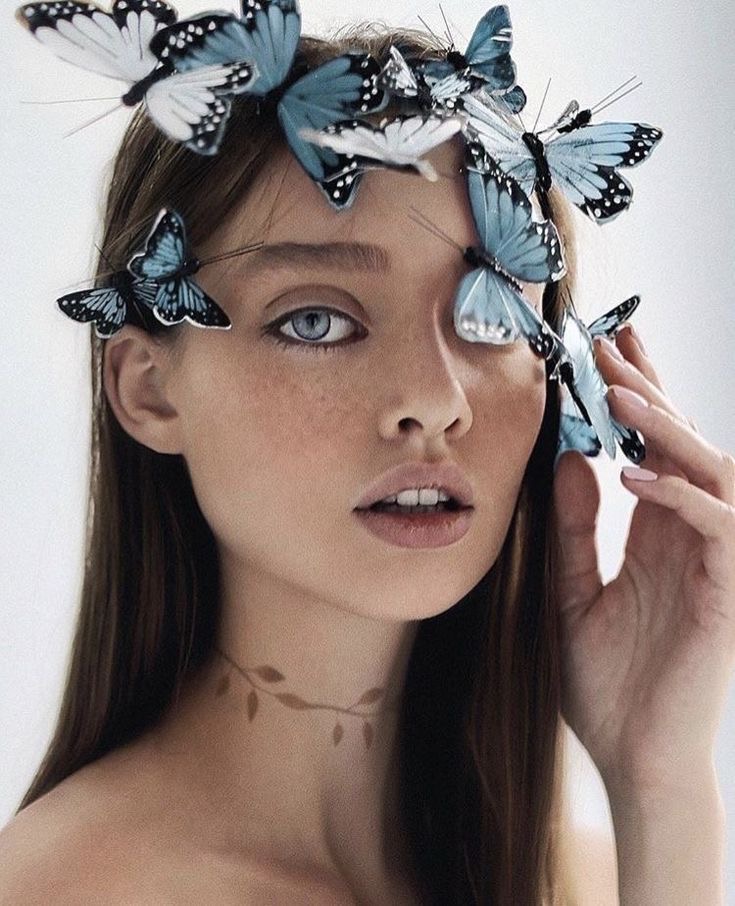 Das alles wird auch bei den anderen Haarpartien gemacht. Lasse die Stellen weiß, welche später die Schmetterlinge werden sollen.