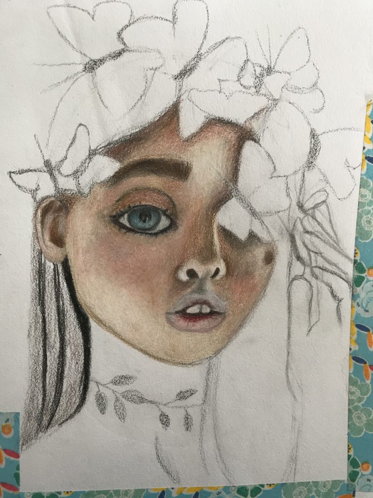 Auf Instagram habe ich ein Colas mit anderen jungen Künstlern gestartet, und das Thema war Frühling!! 🍃 Dazu habe ich auf Pinterest nach verschiedenen Vorlagen gesucht und habe mich für diese entschieden. Hier siehst du den Ablauf meiner Zeichnung. Ich hab dafür schon lange gebraucht, da ich das nicht in einem Stück gezeichnet habe, so um die 5 Stunden. 🙂